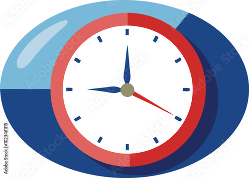 A simple vector illustration of a red and blue wall clock, symbolizing time, schedules, and punctuality.
