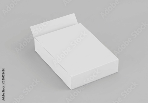 A simple white cardboard box with an open lid, presented against a plain background for packaging design