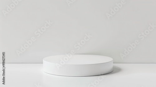A simple white cylinder sits on a white surface against a white background.