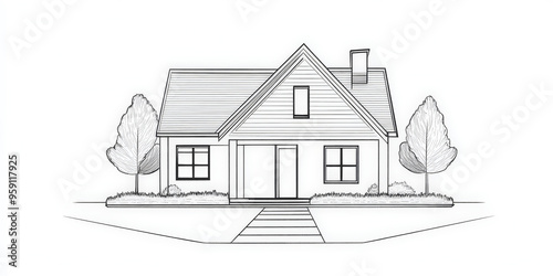 A simple white line drawing of a house, with a roof, windows, and door outlined in clean, minimalist lines. The drawing captures the essence of home with simplicity and warmth.