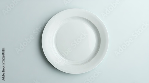 A simple white plastic disposable plate in a clean, organized layout, isolated for minimalistic design.