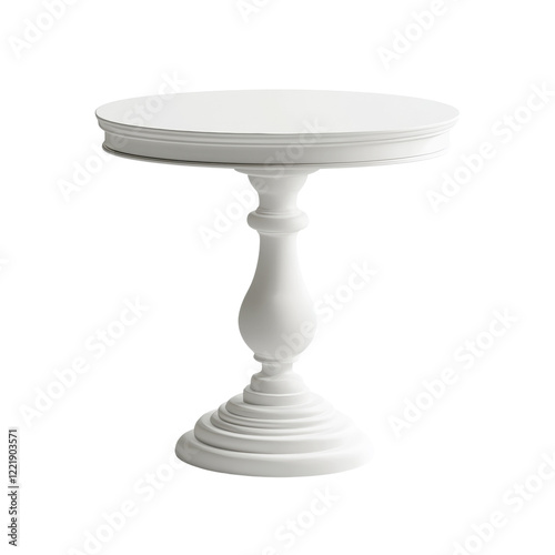 A simple white round pedestal table with an elegant design suitable for various home settings.