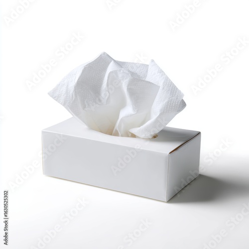 A simple white tissue box plain packaging, isolated on a pure white background. Hygiene, convenience.