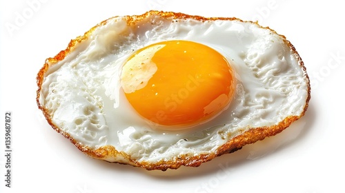 A simple yet appetizing image of a fried egg with slightly crispy edges and a soft yolk, isolated on white.