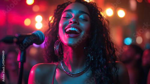 A singer mid-performance, their face glowing with passion as the crowd cheers