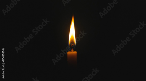 A single candle burns brightly in vibrant orange and yellow tones, isolated against a clean black background, creating a clean and dramatic visual effect.