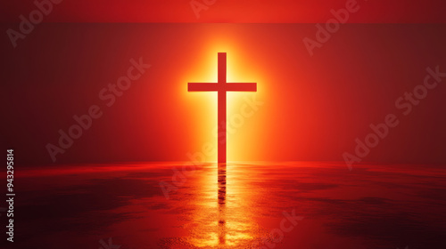 A single cross against a glowing red and orange background, illustrated in 3D. --ar 16:9 --v 6.1 Job ID: 6cd5ad67-dbd2-4714-bbe7-05bab472efc3