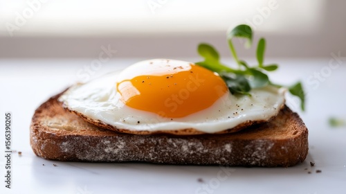 A single, detailed poached egg on toast, on a pure white background, highlighting its richness