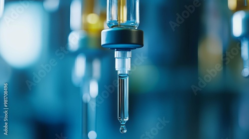 A Single Drop of Liquid Hanging From an IV Drip Tube