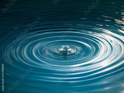 A single drop's serene impact creating mesmerizing concentric ripples on a deep teal water surface.