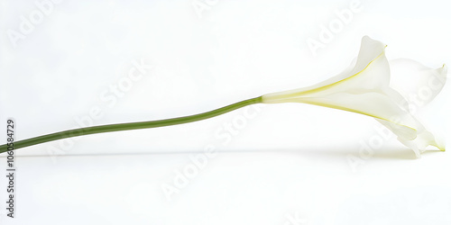 A single elegant white flower lying on a light background, showcasing its delicate beauty.