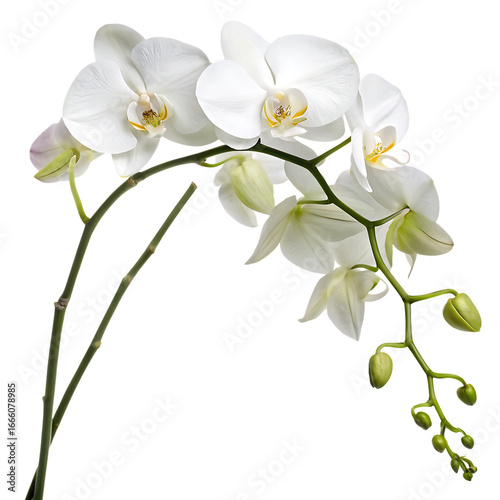 A single elegant white orchid flower in bloom isolated on a transparent background png