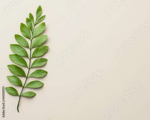 A single fern frond curling on a neutral background, graceful and elegant greenery