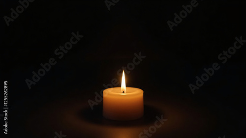 A single flickering candle in complete darkness, casting a soft glow and creating a sense of solitude and reflection