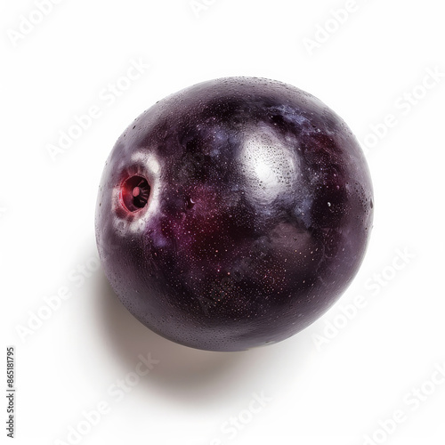 A single, fresh acai berry with a dark purple color, isolated on white background