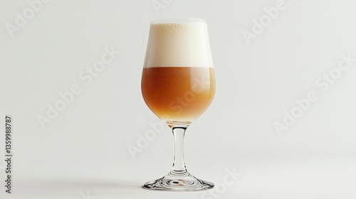 A single glass of beer on a white background with space to write a message.