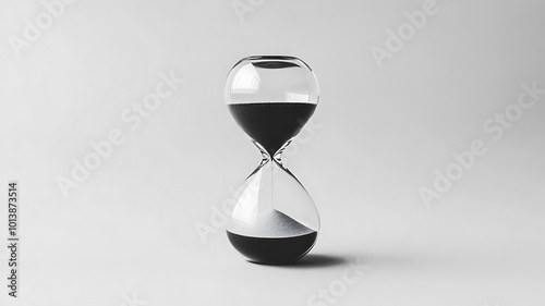 A single hourglass with smoothly flowing sand, representing time slipping away, in the center on a flat background.