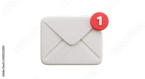 A single, important message awaits in a clean, minimalist inbox; a simple white envelope with a bold red notification.