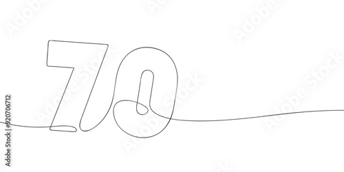 A single line drawing of a seventy symbol. Continuous line seventieth number icon. One line icon. Vector illustration.