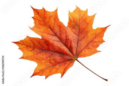 A single orange maple leaf with crisp serrated edges and visible veins, isolated on transparent background.