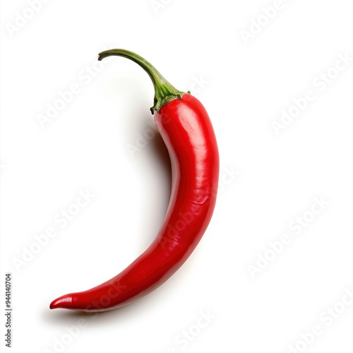 A single piece of red chilli isolated on a white background