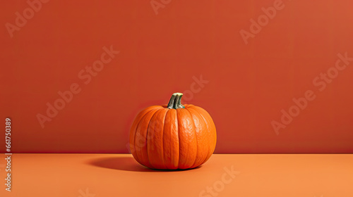 A single pumpkin on a light red background or wallpaper