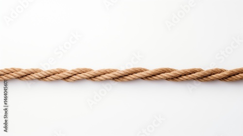 A single rope cord stretched straight, with visible texture and intricate fibers, lying flat against a clean white background