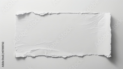 A single sheet of white paper with a torn edge on the left side lies on a white background. The blank sheet is slightly centered to create space for text.