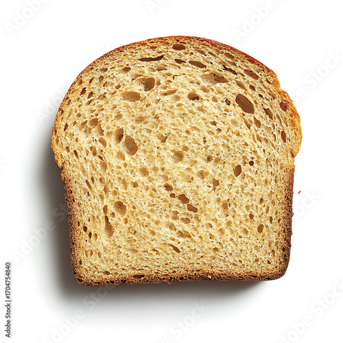 A single slice of whole grain bread with a golden crust and airy crumb texture