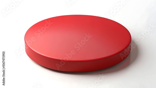 A single smooth matte red disc or button sits on a clean white background with subtle lighting and soft shadows creating a minimalist and modern aesthetic