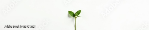 A single stem of a green plant isolated on white background with shadow, solitary, background