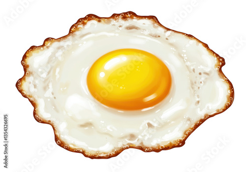 A single sunny side up fried egg with a bright yellow yolk isolated on transparent background