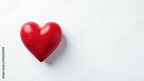 A single vibrant red heart shape against a clean white background provides a simple yet powerful image symbolizing love, affection, and care.