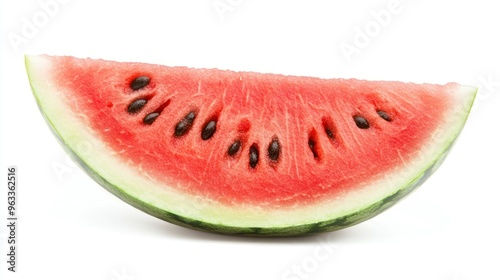 A Single Watermelon Slice with Seeds Isolated on White Background