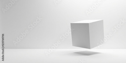 A Single White Cube Floating in a Minimalist Studio Setting, Representing Purity and Simplicity