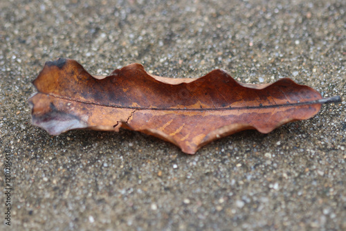 A Singular Leaf's Journey: A close-up of a single, weathered leaf resting on a textured surface.