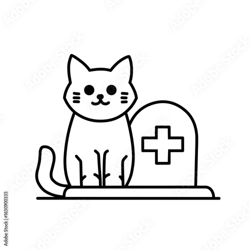A sketch illustration of a cat standing by a grave, icon, sticker or logo design would be perfect.