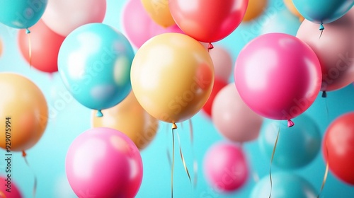 A Sky Full of Celebration: Vibrant balloons take flight against a cheerful blue backdrop, a symphony of color for joyous occasions.