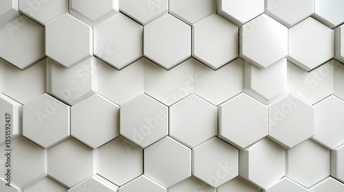 A sleek 3D hexagonal pattern in white and light gray, creating a modern, minimalist aesthetic with subtle depth.