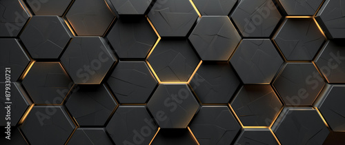 A sleek and elegant background featuring a modern black surface with a geometric gold pattern. The hexagonal shapes create a sophisticated and luxurious design.