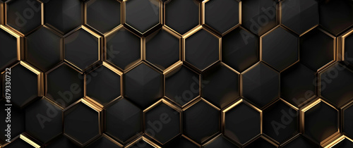 A sleek and elegant background featuring a modern black surface with a geometric gold pattern. The hexagonal shapes create a sophisticated and luxurious design.