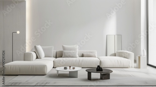 A sleek and luxurious living room design with a white canvas backdrop, Strategically arranged minimalist furniture, Modern classic minimalist style