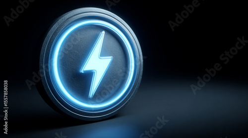 A sleek and modern electric power icon featuring a luminous lightning bolt centered within a circular frame. The symbol glows vividly against a dark backdrop, evoking high energy, electricity, and inn