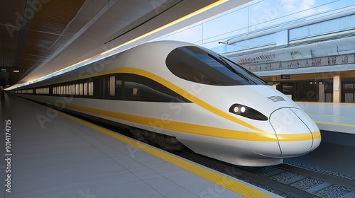 A Sleek and Modern High-Speed Train, Exemplifying Cutting-Edge Technology and Innovative Design. This Dynamic Image Highlights the Train's Streamlined Shape and Futuristic Features,