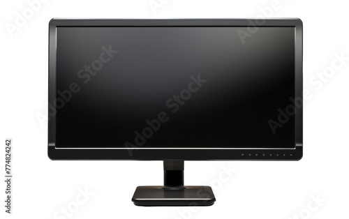 A sleek black computer monitor contrasts against a stark white background