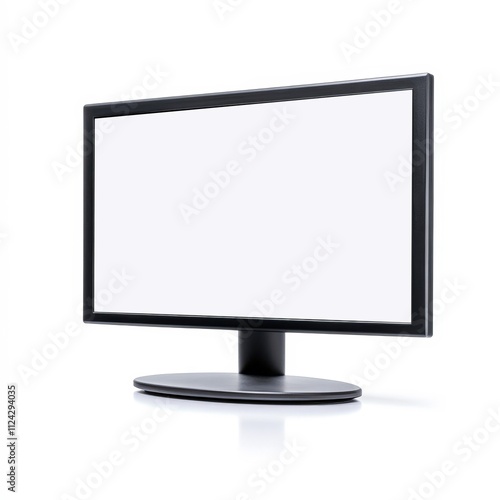 A sleek black computer monitor with a blank screen, ideal for showcasing digital content, web design, or presentations, It offers versatility for office, home, or tech-related visuals,