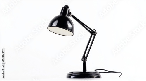A sleek black desk lamp stands alone, its curved shade reflecting light softly. Ideal for illuminating workspaces, this lamp emphasizes stylish simplicity and functionality