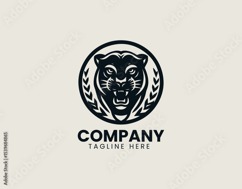A sleek black panther head in aggressive pose with sharp details as a minimalist vector logo design