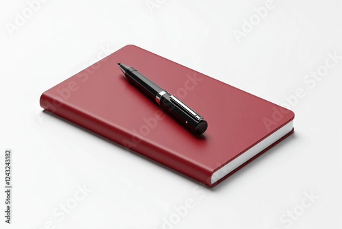 A Sleek Black Pen with Silver Accents Resting Diagonally on a Blank Notebook – Minimalist Composition with Soft Shadows, Glossy Finish, and a Professional Aesthetic