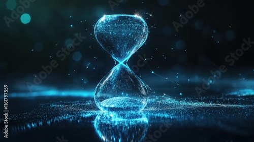 A sleek digital hourglass emitting a soft glow, with dynamic particles representing the passage of time.